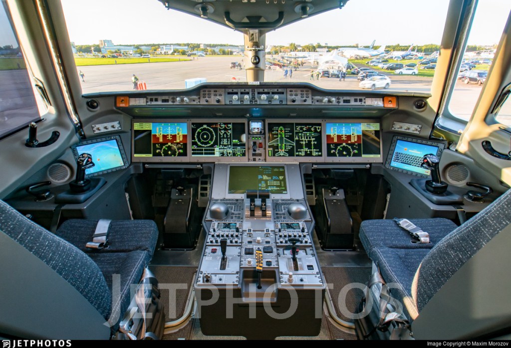 Los sistemas de navegación, aviónica, Unidad Auxiliar de Potencia y otros componentes eléctricos instalados en éste aparato es una colaboración de Hamilton Sundstrand, filial de la compañía rusa United Technologies, Rockwell Collins y su socio ruso Avionika, siendo los escogidos para la instalación de la mayor parte de la aviónica, las compañías occidentales Honeywell, Thales y Elbit Systems instalaron parte de la aviónica de la aeronave, así como las pantallas multifunción, los sistemas de visión, las rampas de evacuación. Este nuevo modelo esta equipado con la denominada cabina de cristal por las pantallas de cristal líquido (LCD), por sus siglas en inglés, instaladas en su cabina de vuelo, cuya imagen vemos mas abajo, los joy-sticks, el head-up display para los pilotos y el fly-by-wire utilizado en las aeronaves de última generación. Dos tipos diferentes de APU (Auxiliary Power Units) ó Unidades Auxiliares de Potencia, la HGT750 de Honeywell y la TA-18-200 de Aerosila, son las montadas en éste aparato.