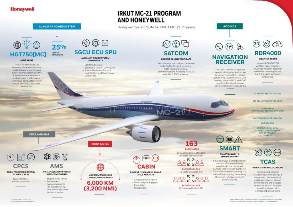 El 8 de Junio de 2016 abandonó la cadena de montaje en Irkutsk, seis años de retraso con respecto al programa original, es el primer avión comercial ruso en la utilización del nuevo tratamiento de material ligero de composite y resina para sus alas, conocido como autoclave, técnica ampliamente utilizada por Airbus y Boeing. El excesivo proteccionismo ruso obstaculizó el acceso a los proveedores occidentales de componentes esenciales como los sistemas de aviónica, motorización, trenes de aterrizaje y sistemas hidráulicos de potencia, viéndose forzado a un nuevo retraso de hasta finales de 2018. En Enero de 2019 las sanciones estado unidenses contra Rusia interrumpieron la llegada de las materias primas para la producción de los materiales ligeros, ó composites, buscando éstos en proveedores locales ó chinos.