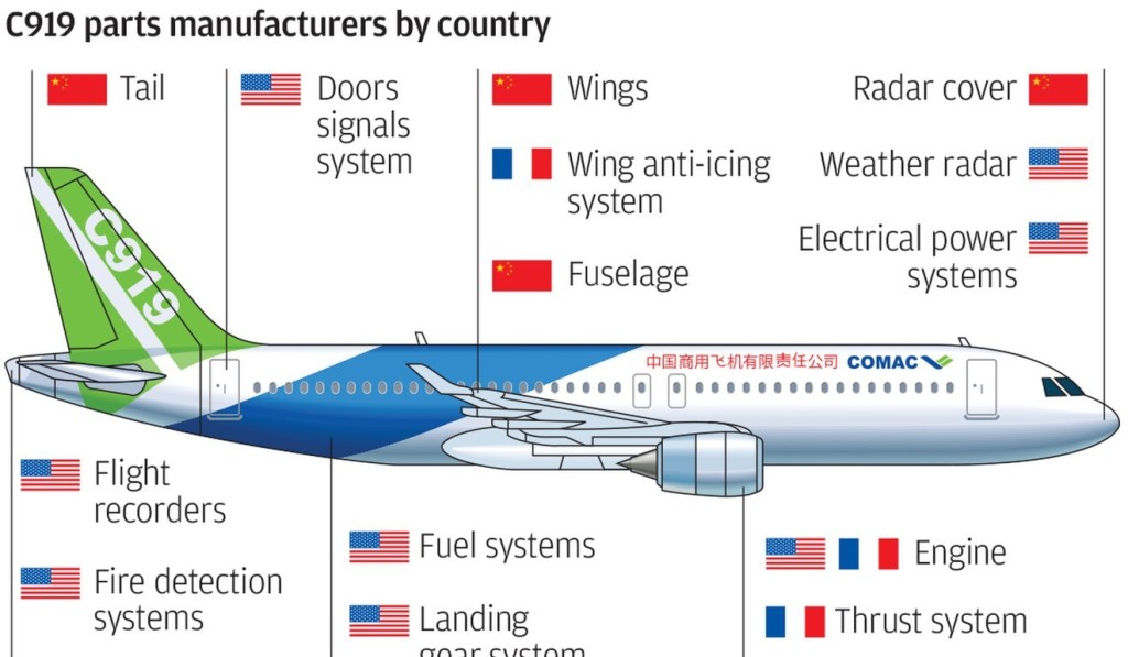 Fabricado por: COMAC en Shangai, China, con la colaboración de empresas aeronáuticas occidentales, ver texto.