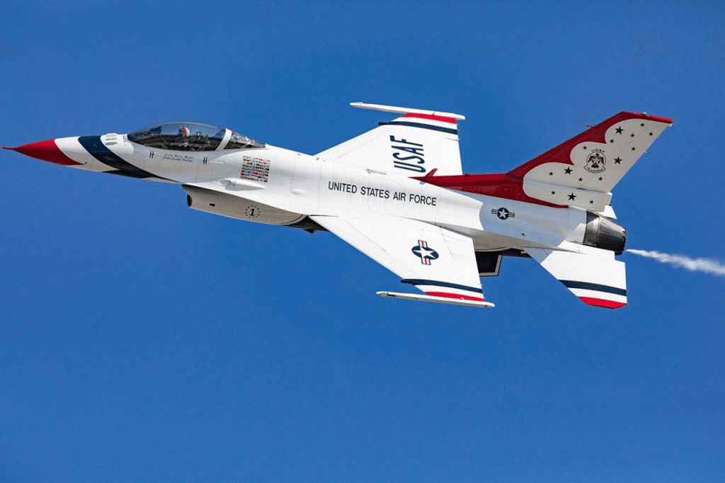 8. F-16 Fighting Falcon de la escuadrilla acrobática de la fuerza aérea norteamericana «Thunderbirds».