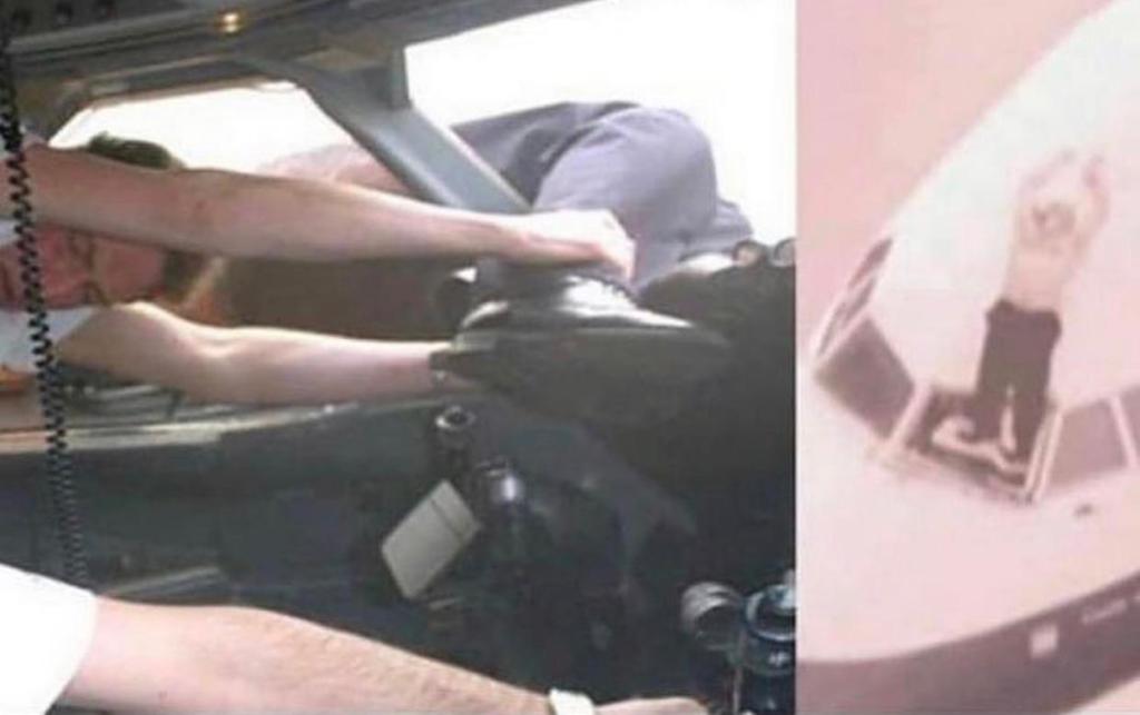 inmediatamente fue agarrado por una de las personas en el interior de la cabina, tal y como observamos en las imágenes superiores, el copiloto hizo descender el aparato para igualar presiones, mientras realizaba la llamada de emergencia, «Mayday», al control aéreo británico, realizando un aterrizaje de emergencia en el aeropuerto británico de Southampton, con final feliz para todos incluido el capitán que fue hospitalizado una vez totalmente recuperado se incorporó al servicio meses mas tarde. Según la investigación realizada, el incidente se debió a que la sujeción de la ventanilla se realizó con una tornillería de inferior calibre, dejando holgura en su interior y la diferencia de presión en vuelo hizo el resto.