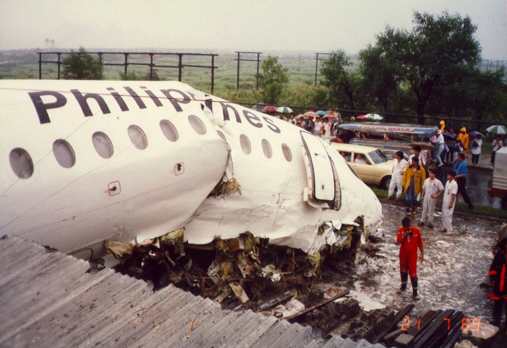 El 21 de Julio de 1989Un BAC 1-11 de la compañía Philipine Airlines se salió de la pista de aterrizaje del Aeropuerto Internacional Ninoy Aquino de Manila, Filipinas, impactando en una autovía adyacente, quedando en el estado que observamos en la fotografía superior con el fallecimiento de 8 personas que circulaban por ella, todos los pasajeros y miembros de la tripulación resultaron ilesos.