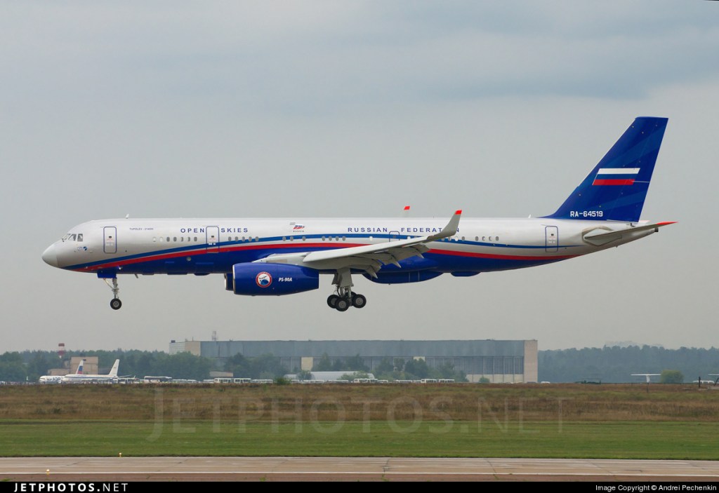 El Tu-214ON, es aparato de reconocimiento aéreo equipado para realizar operaciones dentro del tratado «Cielos Abiertos», (Open Skies), cuya leyenda aparece en la fotografía superior. Es fabricado por KAZAN Aircraft Production Association. La Corporación Vega Radio Engineering fue contratada para el desarrollo del sistema de vigilancia instalado tanto en la aeronave como en tierra. Está equipado con una cámara panorámica A-84ON, una topográfica AK-111, dos cámaras digitales AK-112 para realizar capturas aéreas de alta resolución, dos videocámaras, una de infrarrojos termográfica Raduga y un radar lateral Ronsard.