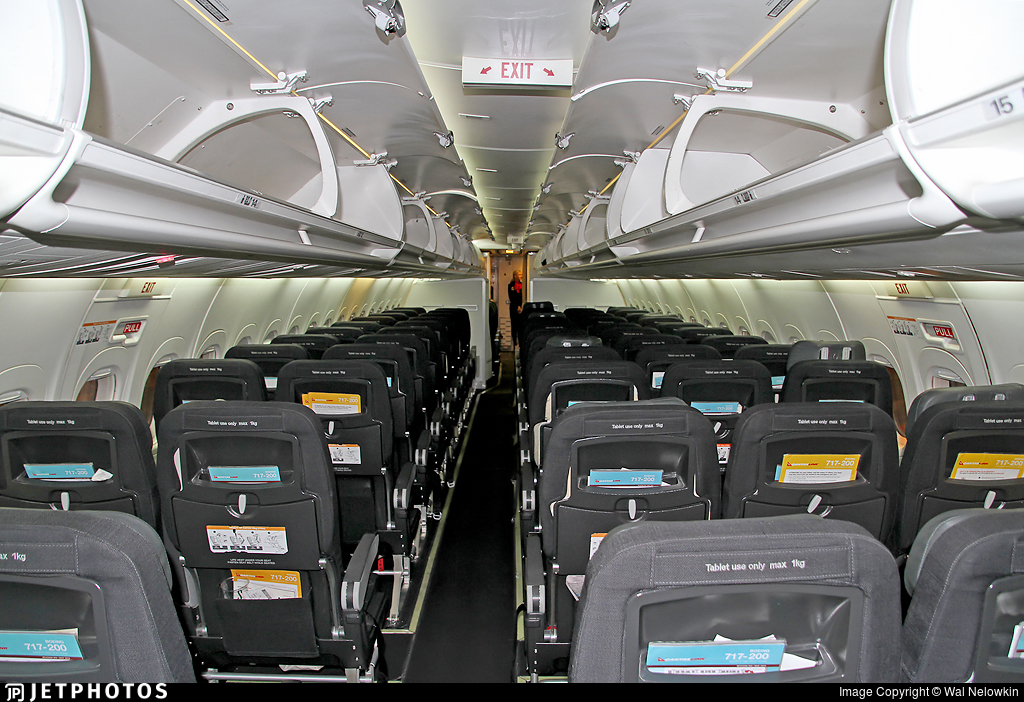 B-717: 134 máximo en alta densidad, 117 en clase única, configuración típica y 106 en dos clases.