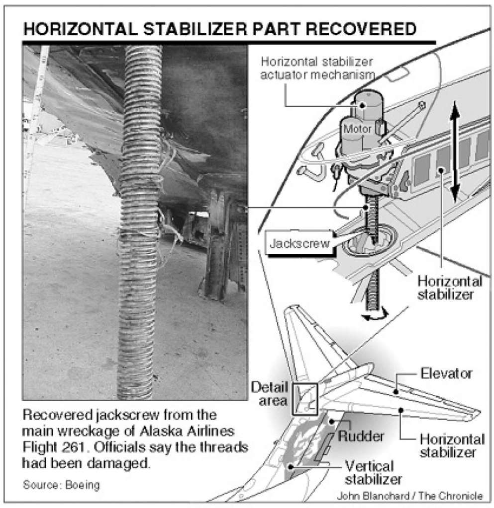 El 31 de Enero de 2000, el vuelo 261 de Alaska Airlines operado por un MD-83, se precipitó hacia el Océano Pacífico al perder el control del estabilizador trasero, cuyo esquema de funcionamiento vemos en la imagen superior, perdiendo la vida sus 88 ocupantes. En investigaciones posteriores, se dedujo que el siniestro fue debido a una falta de mantenimiento por una lubricación deficiente del tornillo gigante que movía los estabilizadores horizontales, por lo que la FAA (Federal Aviation Administration) ordenó una revisión mas frecuente de ésta pieza en el modelo. Entre el 26 y 27 de Marzo y 8 y 12 de Abril de 2008, la FAA, en una revisión rutinaria realizada a la flota de los MD-80 de American Airlines, aproximadamente de unos 300 aparatos, obligó a realizar una revisión urgente de todo el sistema hidráulico del aparato, teniendo que suspender 2.500 vuelos en el mes de Marzo y 3.200 en Abril. Delta tuvo que hacer lo propio con sus 117 aparatos en la flota, suspendiendo 275 vuelos
