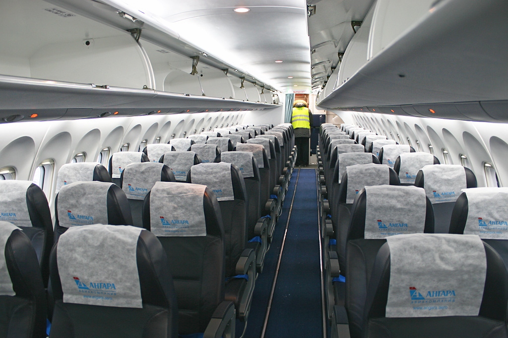 La configuración de la cabina de pasajeros es de 3-2 en clase turista, tal y como vemos en la imagen superior y de 3-2 en clase turista. Los aparatos destinados a las lineas aéreas siberianas disponen de un mayor peso al despegue así como de un tanque adicional de combustible, extendiendo su autonomía hasta los 2.198 kilómetros con 75 pasajeros.