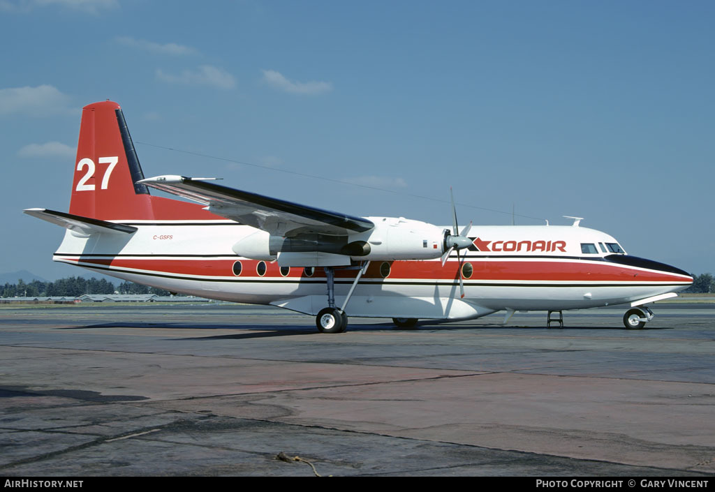 El 24 de Febrero de 1990 un F-27-600 de FTG-Air Service, Flugcharter resultò siniestrado en la localidad alemana de Bergisch Gladbach, a 13 kilómetros del aeropuerto de Colonia. Durante una simulación de prueba de entrada en pérdida del aparato a baja altura, resultan-do con un sobrecalentamiento inusual de las plantas motrices, llegando a prenderse fuego el motor izquierdo, para lo cual los pilotos intentaron realizar un aterrizaje de emergencia en un campo, con la fatalidad de que éste se desprendió, durante la operación. Resultando los dos pilotos con heridas graves y la aeronave totalmente destruida.