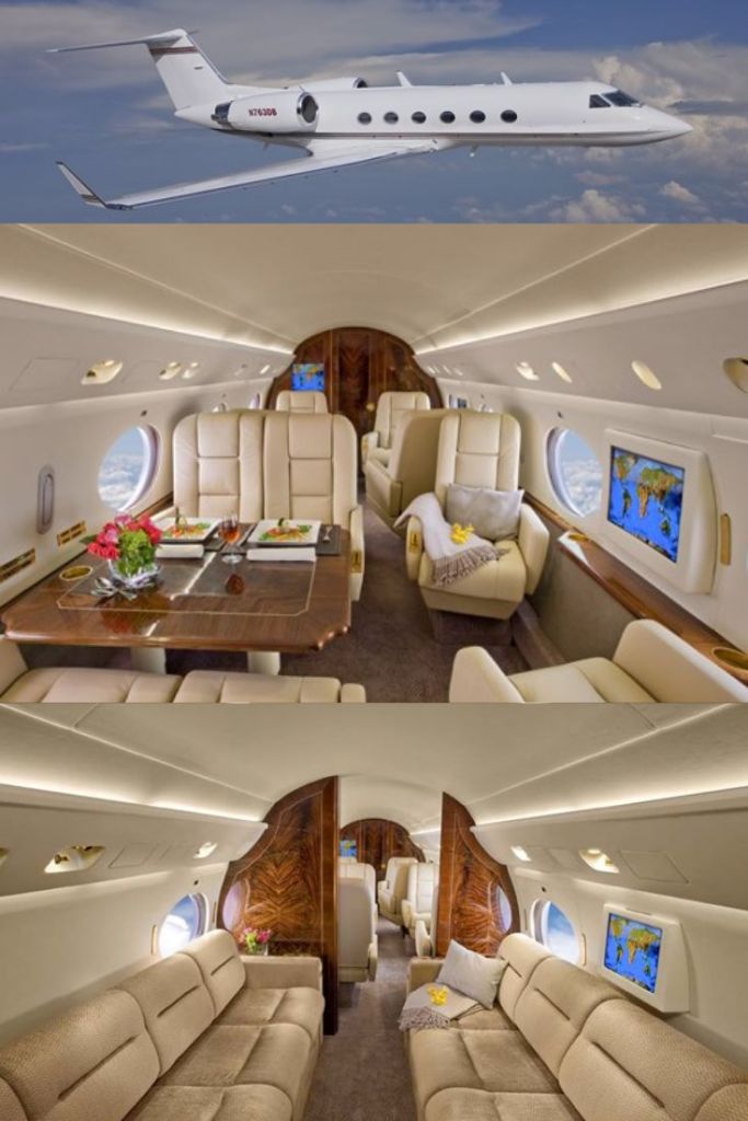 3. Vista exterior e interior del Gulfstream IV.