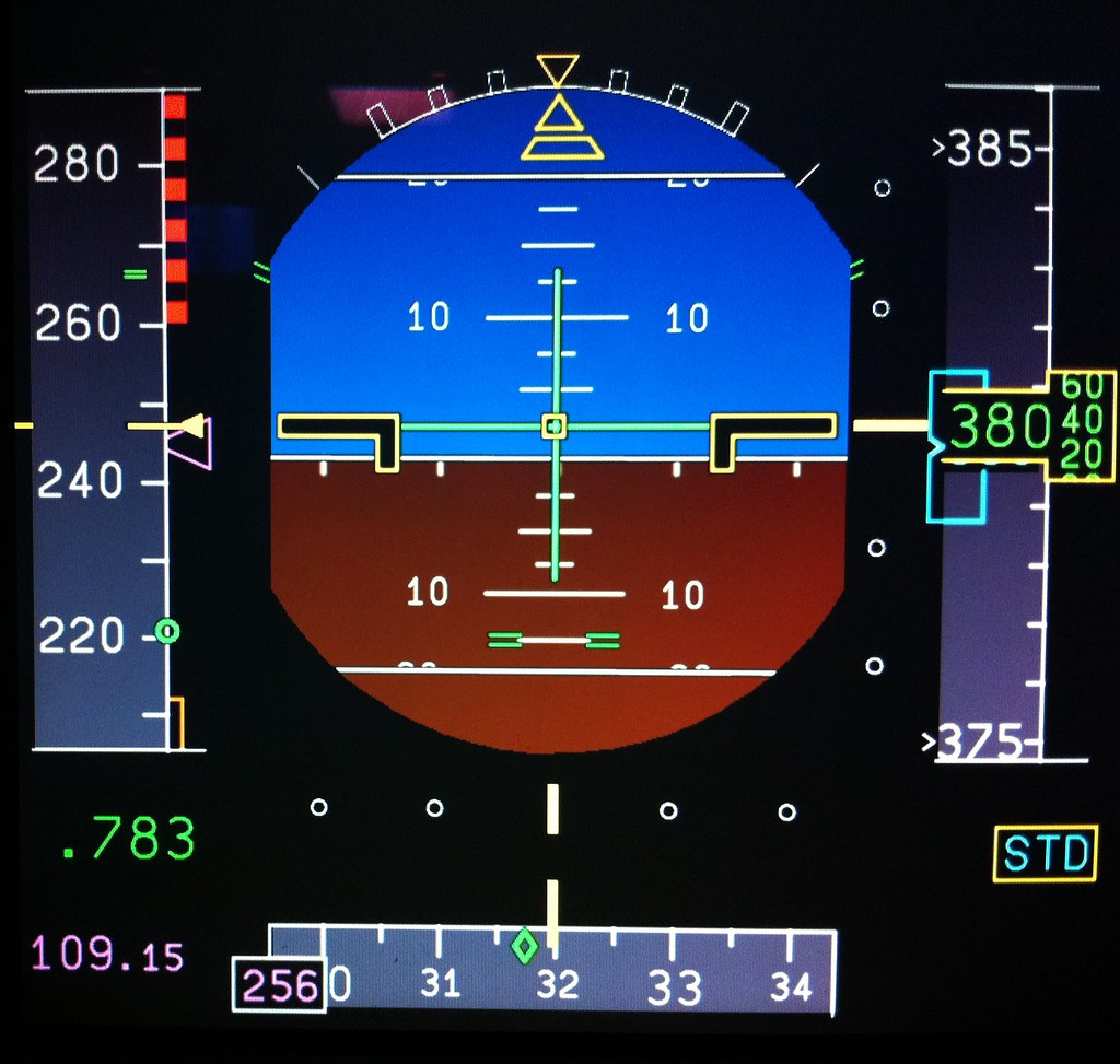 21. Contenido de los monitores primarios de vuelo, en este caso, muestra el horizonte artificial.
