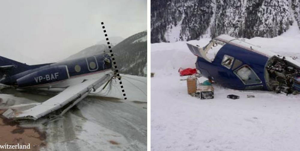 El 12 de Febrero de 2009, un Falcon 100 de Laret Aviation, con registro VP-BAF, en vuelo desde Viena, Austria a Samedan, Suiza, con 2 tripulantes y 1 pasajero, resultó siniestrado durante la toma de tierra del aparato en el aeropuerto de destino al impactar el ala derecha en la parte izquierda de la pista, perdiendo el control de la aeronave e impactando el ala izquierda con con un muro de nieve helada de 4 metros, partiéndose en dos, tal y como vemos en la imagen superior, perdiendo la vida los 2 tripulantes y el pasajero resultando con heridas de pronóstico reservado.