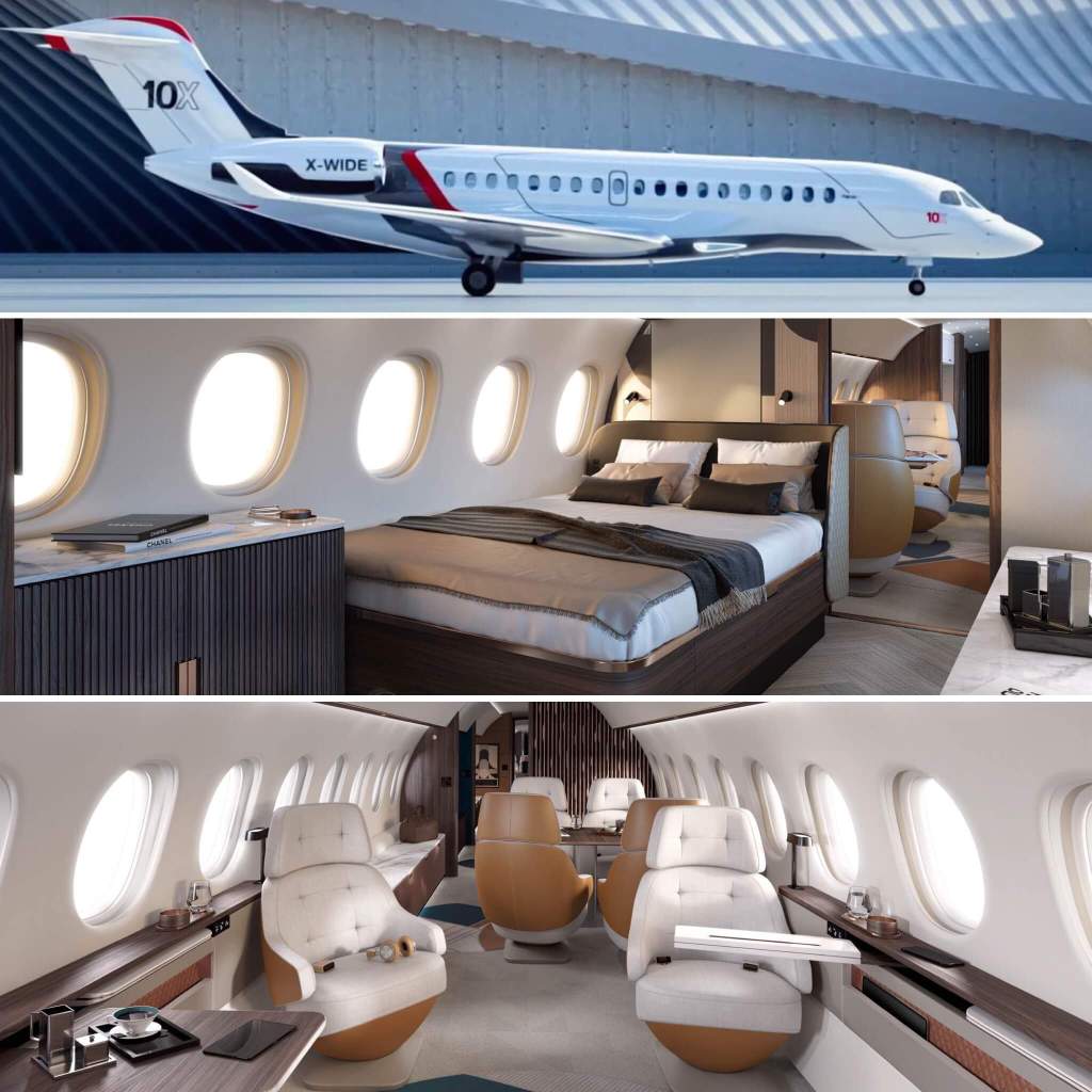 El Falcon 10X, es un bimotor de negocios de muy largo alcance en desarrollo, con alas de fibra de carbono de nuevo diseño, una autonomía de 13.900 kilómetros. Fue presentado a la prensa especializada el 6 de Mayo de 2021, prevista su puesta de largo en 2025, para competir directamente con el canadiense Bombardier Global 7500 y el norteamericano Gulfstream G-700. Tiene una longitud de 33,40 metros, una envergadura de 33,60 metros, la anchura interior de la cabina es de 2,77 metros y su altura de 2,03 metros, con una longitud interior de 16,40 metros.