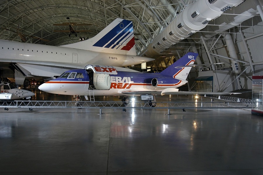 Entre 1950 y 1970 el empresario Frederick W. Smith estuvo buscando el aparato ideal para comenzar el negocio de carga aérea que tenía en mente, sintiéndose identificado con la nueva aeronave y el lanzamiento de Federal Express ó FedEx, para lo cual adquirió una flota de 33 Falcon 20 que fueron convertidos en cargueros, incluyendo un portón de carga en el lado de estribor. Pero pronto se vio obligado a sustituir estos aparatos por los mas grandes y capaces, el Boeing B-727-100, debido al éxito conseguido con su nueva empresa. Uno de los modelos originales se encuentra expuesto en el Smithsonian Udvar-Hazy Centre del aeropuerto de Dulles en Washington.