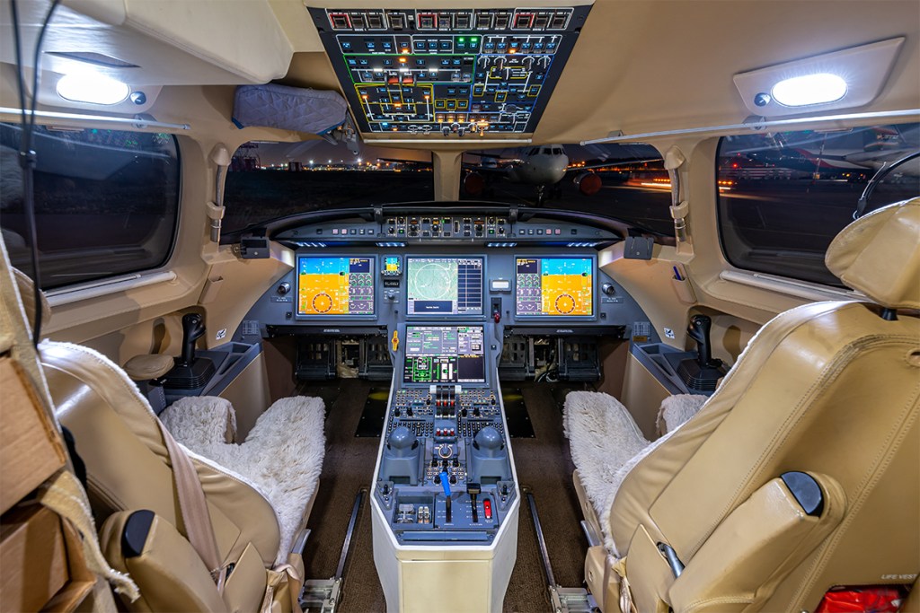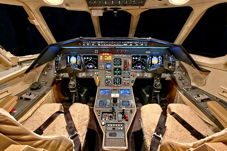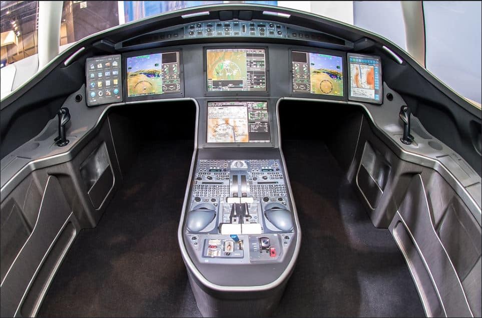 La cabina de la aeronave es de la denominada de cristal y los controles de vuelo son electrónicos, conocidos como, fly-by-wire, con mandos joystick, situados a ambos laterales de la cabina, tal y como vemos en la imagen superior El sistema hidromecánico de la extensión de los flaps y las extensión de los aerofrenos, o spoilers, de esta encargado aTRW Aeronautical Systems, el control de vuelo y la APU (Auxiliary Power Unit), o Unidad Auxiliar de Potencia a Parker Hannifin.