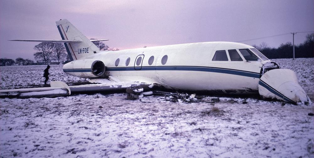 Desafortunadamente, ninguna aeronave está a salvo de ningún siniestro. El 12 de Diciembre de 1973 un Falcon 20C, en vuelo desde Norwich, Reino Unido a Goteburgo, Noruega, resultó accidentado al encontrarse 3 bandadas de aves consecutivas durante el despegue, pudiendo esquivar 2 de ellas a diferentes alturas, impactando contra el fuselaje como si fueran proyectiles y una última de ellas a una altitud de aproximadamente de 100 metros, (300 pies), fue la puntilla para derribar la aeronave, debido a la ingestión de las aves en los motores perdiendo altura inmediatamente, teniendo que buscar los pilotos una zona para un aterrizaje forzoso lo mas llano posible. Afortunadamente todos sus ocupantes resultaron ilesos, aun cuando los tripulantes resultaron con heridas leves.