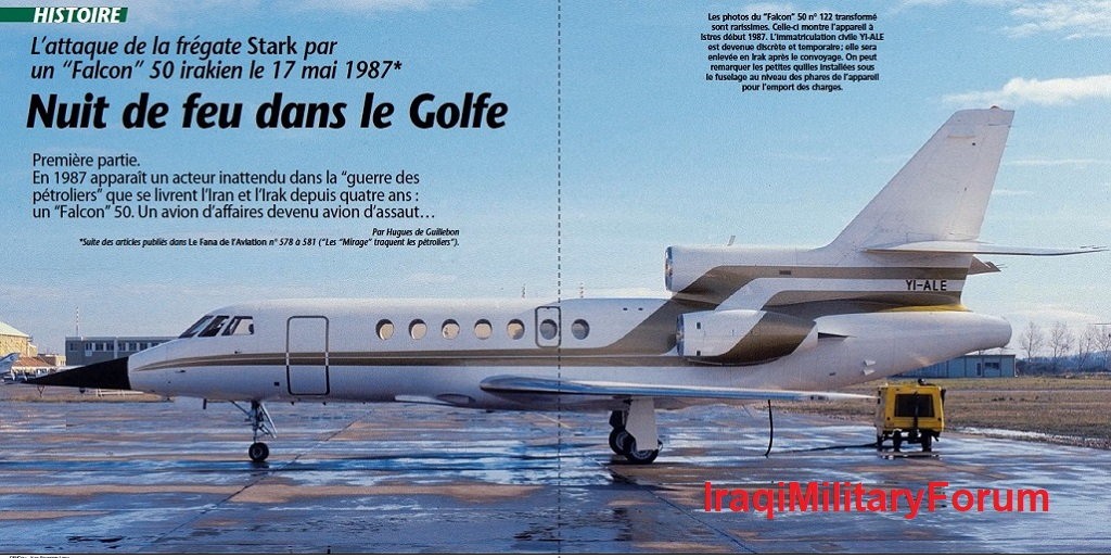 El Falcon 50 «Susanna», fue un Falcon 50 modificado para Irak, equipado con un radar Cyrano IV-C5 y soportes para el transporte de 2 misiles antibuque AM-39 Exocet, utilizado para el entrenamiento de las tripulaciones de los Mirage F1, probablemente utilizado en el ataque iraquí a la fragata norteamericana USS Stark, el 17 de Mayo de 1987 en el Golfo Persico, con la pérdida de 37 vidas y 21 heridos. La aeronave nunca volvió de la zona de conflicto.