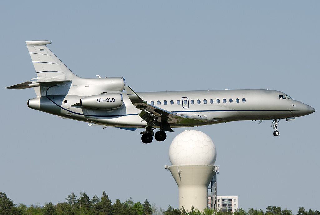 Los Dassault Falcon son una familia de aparatos privados francesa, manufacturados por Dassault Aviation. El primero de las aeronaves en ver la luz fue el Falcon 20, un bi reactor de ala baja propulsado originalmente por 2 turbo ventiladores General Electric CF700-2D-2 con una potencia unitaria de 20 kN, situados en la parte posterior del fuselaje, conocido originalmente como Dassault-Breguet Mystère 20, con una capacidad de entre 8 y 14 pasajeros mas 2 tripulantes. Realizó su vuelo inaugural el 3 de Junio de 1965, fue producido entre 1965 y 1991, con un total de 512 aparatos ensamblados en la factoría situada en el aeropuerto de Bordeaux-Mèrignac Gironde en Francia.