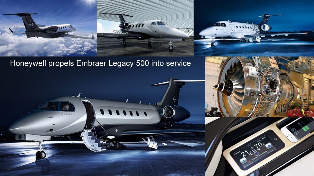 El Legacy 500 es la versión alargada del modelo anterior, con una capacidad entre 9 y 12 pasajeros y 2 tripulantes. Tiene una longitud de 20,74 metros, una envergadura de 19,25 metros, peso máximo al despegue 17.400 kilos, una capacidad de combustible de 5.920 litros, una longitud de cabina interior de 7,32 metros, una anchura de 2,08 metros y una altura de 1,83. Está propulsado por 2 Honeywell HTF7500E con una potencia unitaria de 31,30 kN, tiene una velocidad de crucero de 863 km/h, un radio de acción de 5.788 kilóme-tros, un techo de servicio de 13,716 metros (45.000 pies). Puede despegar en pistas de 1.245 metros y aterrizar en 647 m de longitud. Alzó el vuelo por primera vez el 27 de Noviembre de 2012 y obtuvo su certificación el 12 de Agosto de 2014.