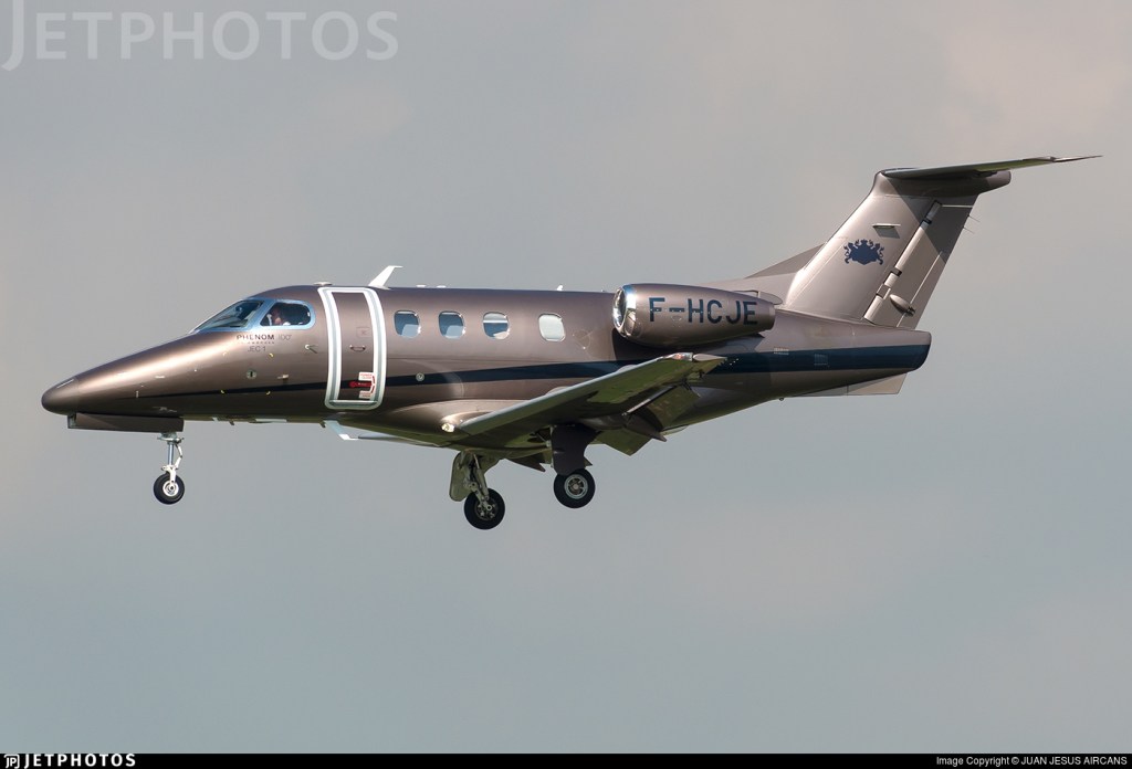 El Phenom 100, tal y como vemos en la imagen superior es un aparato de negocios ligero, fabricado por Embraer. Fue presentado en la NBAA, (National Business Aviation Association) el 9 de Noviembre de 2005, alzó el vuelo por primera vez el 27 de Julio de 2007, fue certificado por las autoridades brasileñas y norteamericanas, como EMB-500, en Diciembre de 2008 y la primera entrega tuvo lugar el 24 del mismo mes. Tiene una capacidad de 4 o 5 pasajeros mas 2 tripulantes, ó 7 pasajeros con 1 solo tripulante en la cabina de pilotaje. Esta propulsado por 2 Pratt & Whitney Canada PW 617F1-E, con una potencia unitaria de 7,7 kN.