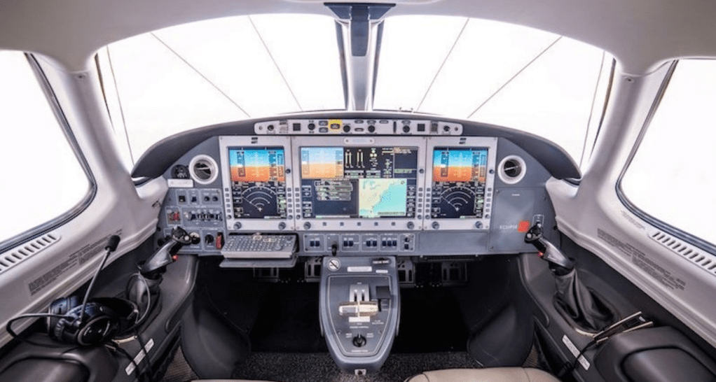 1. Vista exterior y cabina de pilotaje del Eclipse 500.