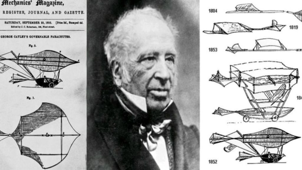 Si.r George Cayley puede considerarse el padre del aeroplano, al realizar un estudio riguroso en 1846, sobre la aplicación de la física al vuelo y el desarrollo de aparatos más pesados que el aire, imitando la curvatura de las alas de las aves, calcular el centro de presión, gravedad y la configu-ración de las partes de los nuevos aeroplanos, las alas fijas, fuselaje y la cola a imagen y semejanza de las aves e imitar su planeo con el nuevo invento. Fue este inventor quien acuñó y estudió las fuerzas que forman parte del vuelo de las nuevas aeronaves, el empuje, fuerza ascensional, resistencia al aire y el peso. Realizando investigaciones sobre la propul-sión, diseño estructural, aerodinámica, estabilidad y control de su nueva máquina voladora, el planeador, glider, en su lengua natal.