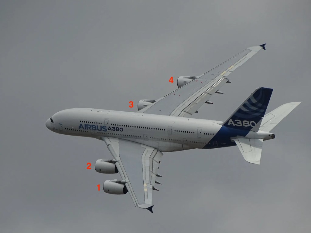 La numeración de los motores de aviación son siempre de izquierda a derecha, tal y como vemos en la imagen superior, lo mismo que el control de gases en la cabina de vuelo tal y como vemos en la imagen de la foto-grafía número 2.