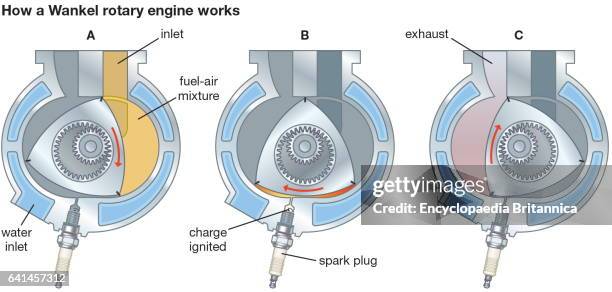 El motor wankel es un motor rotativo, refrigerado por agua, con la mitad de peso y volumen, pero con una excelente relación peso/potencia, esen-cial para motores de aviación y no tan complejo como los de cuatro tiem-pos. Este motor, tiene un bloque de aluminio, un rotor de acero a modo de pistón que gira en su interior, con una bujía, donde salta la chispa, una válvula de admisión y una de escape, tal y como vemos en la fotografía superior. La mayor ventaja de este propulsor es que el aluminio se expan-de con mayor facilidad y no se agarrota por el sobre calentamiento, como los motores convencionales. Fueron desarrollados al final de la Segunda Guerra Mundial, pero no tuvieron éxito en el mundo de la aviación, ya que fueron eclipsados por la llegada del reactor. La marca automovilística Mazda utilizó esta motorización en algunos deportivos y Citroën desa-rrollo el RE-2 para propulsar un helicóptero en 1970.