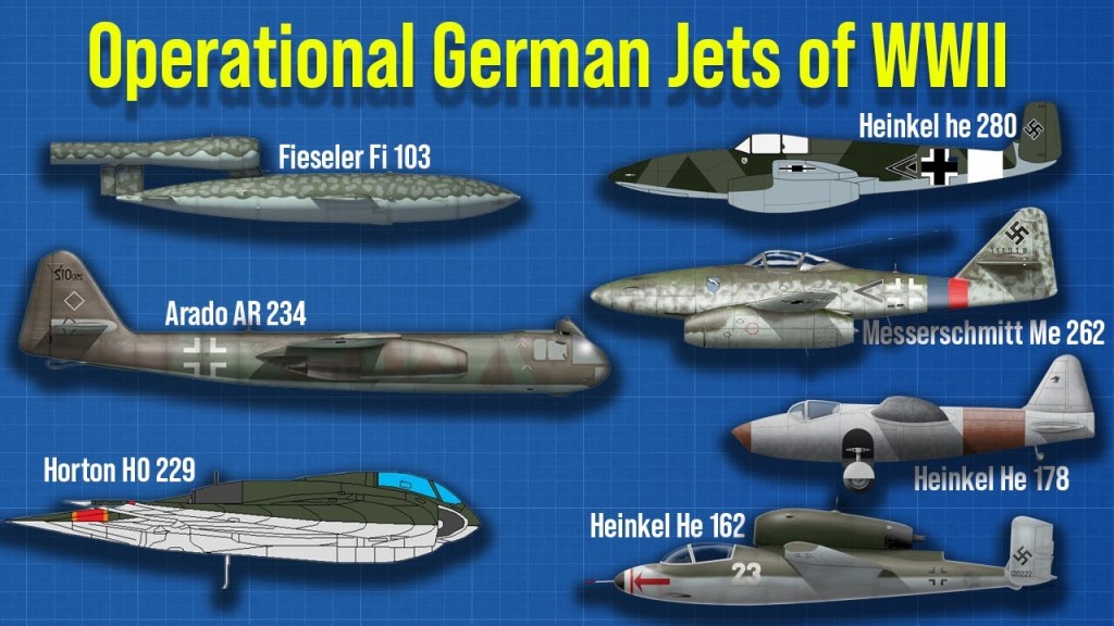 El primer reactor de la historia de la aviación fue el Heinkel He 178, cuya foto del inventor, propulsor, su plano y aparato en el que fue instalado, ve-mos en la imagen superior. Alzó el vuelo por primera vez en 1939, pilota-do por Erich Warsitz, seguido por el primer caza operativo del mundo, el Messerschmitt Me 262 en Julio de 1942, y el primer bombardero, tam-bién alemán el Arado Ar 234, aparecido en Junio de 1943.