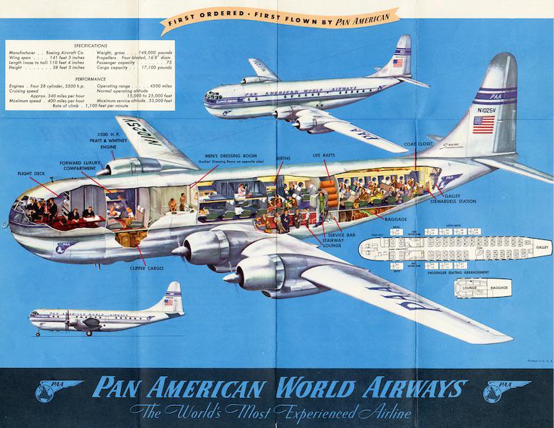 Fue el aparato comercial mas grande de su época. Tenía una capacidad de 90 pasajeros en vuelos diurnos y de 40 en los nocturnos. El año si-guiente se inauguró el primer vuelo regular entre los EE. UU. y el Reino Unido. Otras rutas fueron abriéndose paulatinamente a distintos países del mundo, dado que en el planeta hay más agua que tierra. Cuya imagen vemos más arriba. En ese mismo año, Boeing lanzó su primer aparato con cabina presurizada, el Model 307 stratoliner. Alcanzaba una altitud de 20.000 pies (6.100 metros), reduciendo considerablemente las tur-bulencias aéreas.